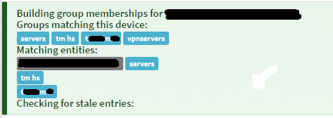 Now, if you remove the "group includes vpn basic" rule or change the regex to not match the "vpn basic" hosts anymore, those hosts will be removed from vpnservers and servers immediately on next rebuild.